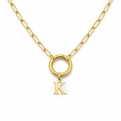 Paperclip Link Circle Carabiner Intial Letter Charm Holder Necklace for Women Stainless Steel 20" Ginger Lyne