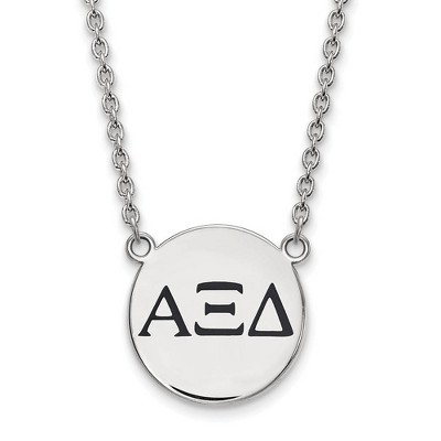 Black Bow Jewelry Sterling Silver Alpha Chi Omega Greek Life Enameled Red Letters Small Disc Necklace 18 Inch