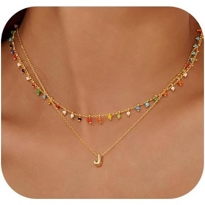 SmallRig Beach Style Initial Necklace Colorful Beaded Layered Choker Jewelry