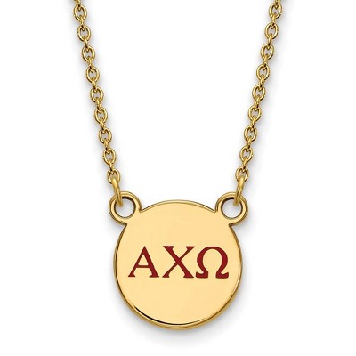 Black Bow Jewelry 14k Yellow Gold Plated Sterling Silver Chi Omega Greek Life Enameled Red Letters Small Disc Necklace 18 Inch