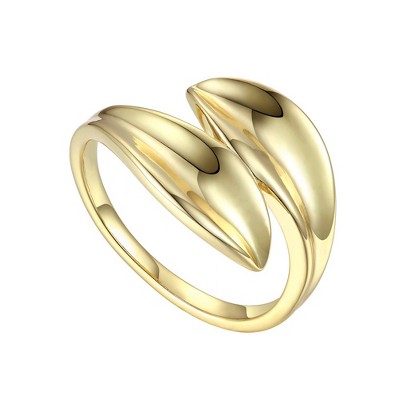Elegant 14k Gold Plated Bypass Ring with Petal Wave Design for a Graceful and Contemporary Touch of Sophistication