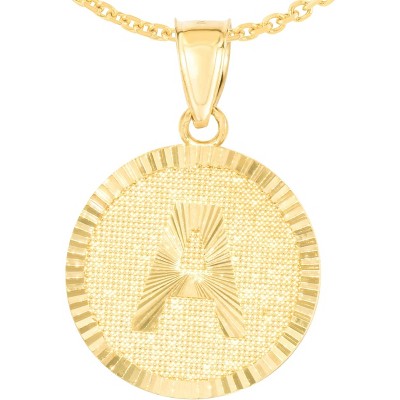 10k Yellow Gold 0.63" Personalized Medallion Alphabet Letter A - Z Initial Charm Pendant with optional Extendable Chain Necklace