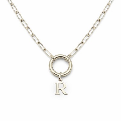 Paperclip Link Circle Carabiner Intial Letter Charm Holder Necklace for Women Stainless Steel 20" Ginger Lyne