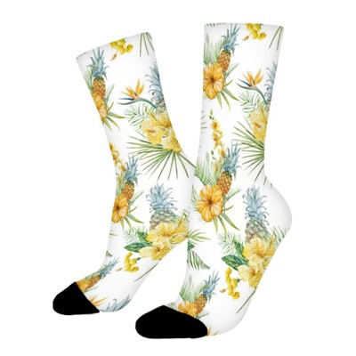 Watercolor Tropical Floral Pattern Women Printed Crew Socks Funny Funky Socks Soft Polyester Novelty Gifts for Artists Men