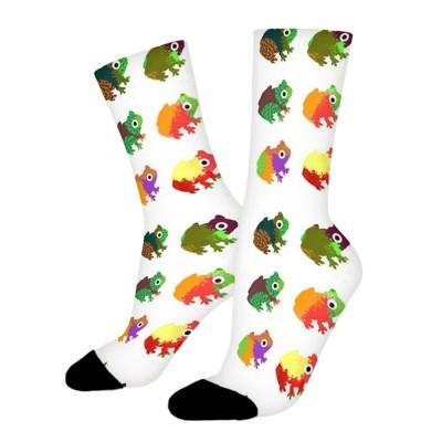 Colorful Frog Women Printed Crew Socks Funny Funky Socks Soft Polyester Novelty Gifts for Artists Men