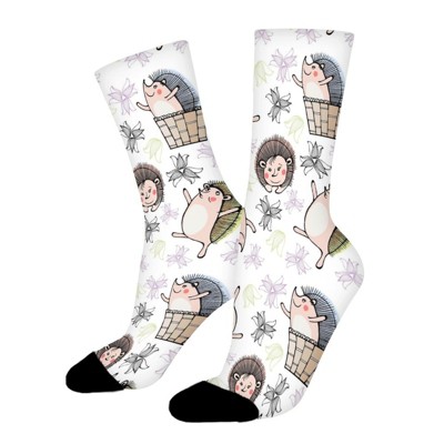 Cartoon Hedgehog Women Printed Crew Socks Funny Funky Socks Soft Polyester Novelty Gifts for Artists Men