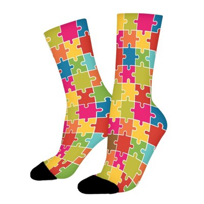 Autism Awareness Women Printed Crew Socks Funny Funky Socks Soft Polyester Novelty Gifts for Artists Men