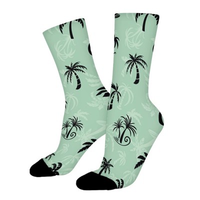 Cute Palm Tree Leaves Women Printed Crew Socks Funny Funky Socks Soft Polyester Novelty Gifts for Artists Men