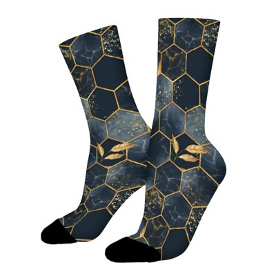 Modern Blue And Gold Under The Sea Women Printed Crew Socks Funny Funky Socks Soft Polyester Novelty Gifts for Artists Men
