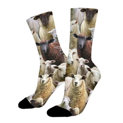Farm Animals Packed Sheep Women Printed Crew Socks Funny Funky Socks Soft Polyester Novelty Gifts for Artists Men