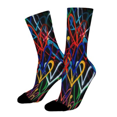 Hearts Women Printed Crew Socks Funny Funky Socks Soft Polyester Novelty Gifts for Artists Men