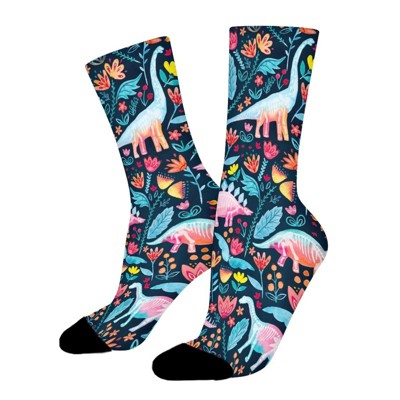 Dinosaur Delight Women Printed Crew Socks Funny Funky Socks Soft Polyester Novelty Gifts for Artists Men