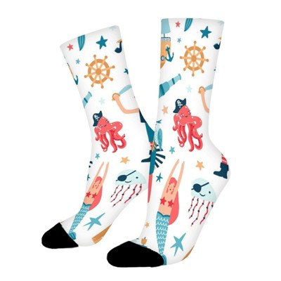 Pirate Sea Women Printed Crew Socks Funny Funky Socks Soft Polyester Novelty Gifts for Artists Men