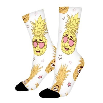 Funny Pineapple Faces Women Printed Crew Socks Funny Funky Socks Soft Polyester Novelty Gifts for Artists Men