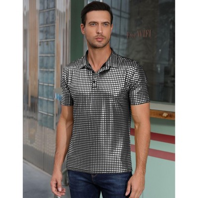 Clearlove Shirts Shiny Sequins Short Sleeve Party Polo Shirt Hipster Nightclub Prom Costume T-Shirt Men's 70s