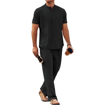 COOFANDY Men's 2 Piece Linen Suits Set Regular Fit Casual Lightweight Blazer Jacket and Pants