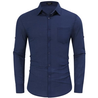 Mens Button Down Linen Shirts Casual Long Sleeve Dress Shirts Regular Fit Cotton Beach Yoga Shirts with Pocket