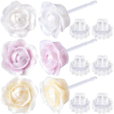 Hypoallergenic Plastic Flower Stud Earrings with Comfortable Rubber Backs for Sensitive Ears