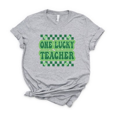 Simply Sage Market Women's Lucky Clover Checkered Front and Back Short Sleeve Graphic Tee