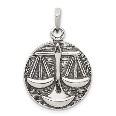 Black Bow Jewelry Sterling Silver Libra the Scale Zodiac Embossed Circle Pendant