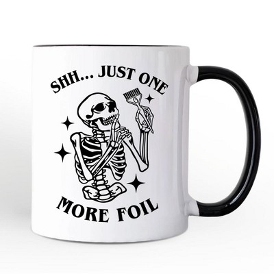 Funny Skeleton Hairstylist Mug, Shh Just One More Foil Hair Salon Gift | OrnamentallyYou