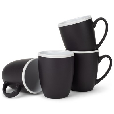 Elanze Designs Solid Color Black White Interior 16 ounce Matte Ceramic Mugs Matching Set of 4
