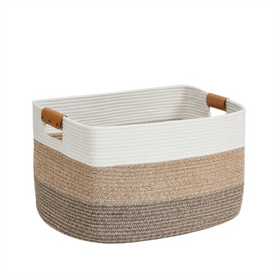 Aoibox Woven Storage Basket Cotton Rope Rectangle 13 x 10 x 9 in with Handles Label for Closet Toys Books Brown White