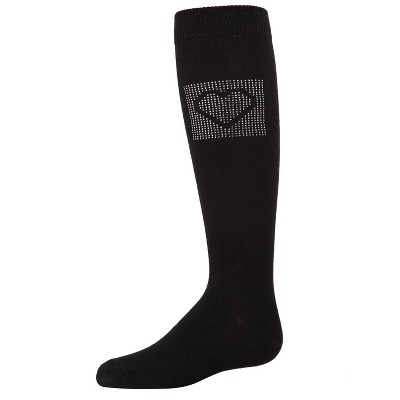 Memoi Rhinestone Heart Girls Knee High Cotton Blend Socks