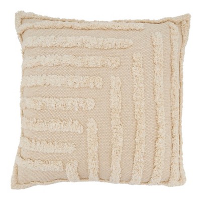 Saro Lifestyle Chic Geometric Tufted Poly Filled Throw Pillow, Beige, 20"x20"