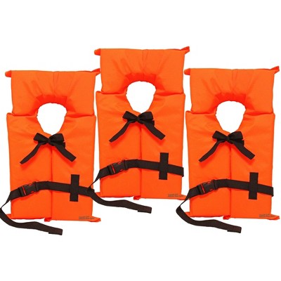 Hardcore 3 Pack Coast Guard approved life jackets for adults. High visibility color Type II keyhole life vest. Compliance flotation device