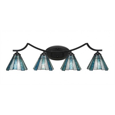 Toltec Lighting Zilo 4 - Light Vanity in Matte Black with 7" Sea Ice Art Glass Shade