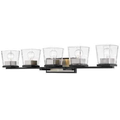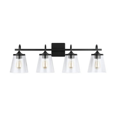 Modern 4-Light Bathroom Vanity Light Fixture, Black and Gold Wall Sconce with Clear Glass Shades