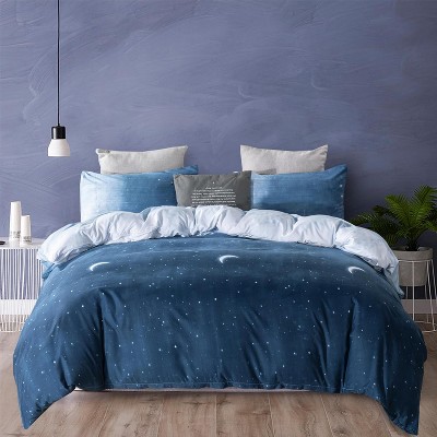 Ultra Soft Microfiber Queen Duvet Cover Set, 3-Piece Star Moon Galaxy Print Bedding, Blue Stars, No Comforter