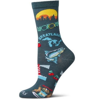 Memoi Women's Michigan-Themed Rayon-Blend Novelty Crew Sock Teal 9-11
