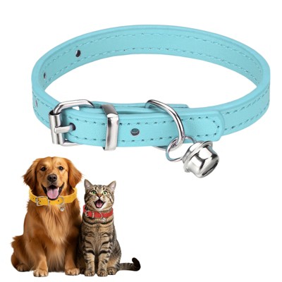 Unique Bargains Adjustable Buckle PU Leather Dog Collar with Bell Intended for Kitten Cats / Small Animals