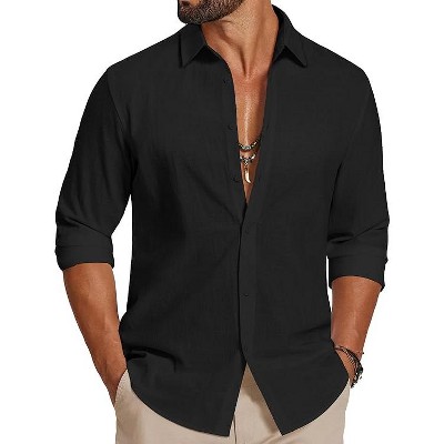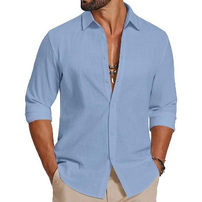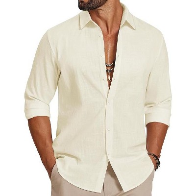 COOFANDY Men's Long Sleeve Button Down Shirts Casual Untucked Dress Shirt Beach Wedding Shirts