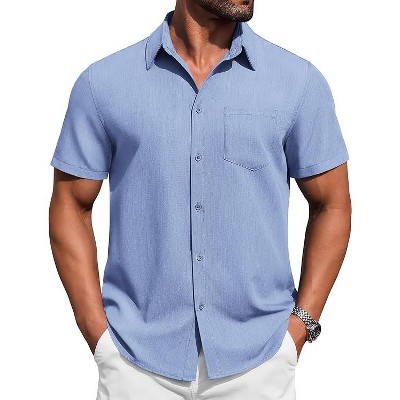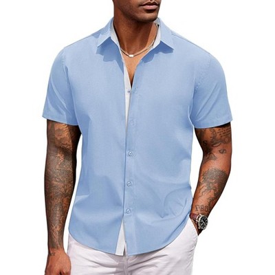 COOFANDY Mens Button Down Short Sleeve Shirt Casual Summer Stretch Denim Dress Shirts with Pocket