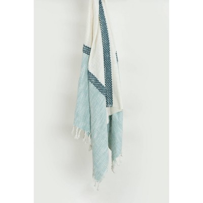 HomeRoots 50" X 60" Blue and White Woven Cotton Striped Throw Blanket with Tassels