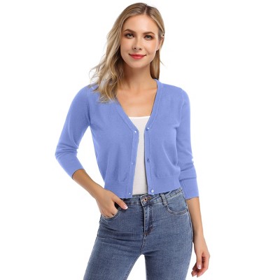 Women s 3/4 Sleeve Cropped Cardigan Sweaters Open Front Knit Short Bolero Shrugs Light Grey 3XL