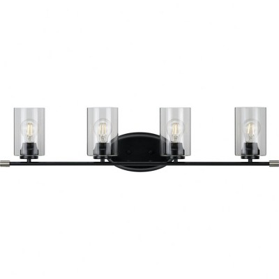 Progress Lighting Leap Collection 4-Light Bath Vanity in Brushed Nickel with Tapered Etched Glass Shades