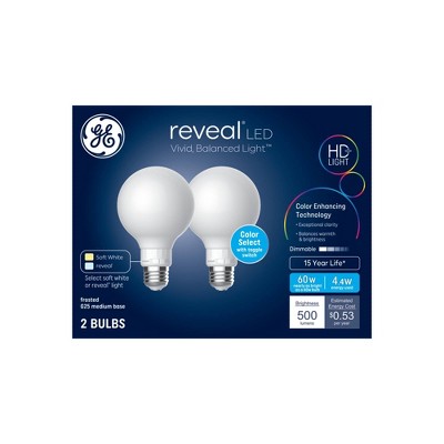 GE 2pk Reveal LED 60W Bulb Frosted A19 New