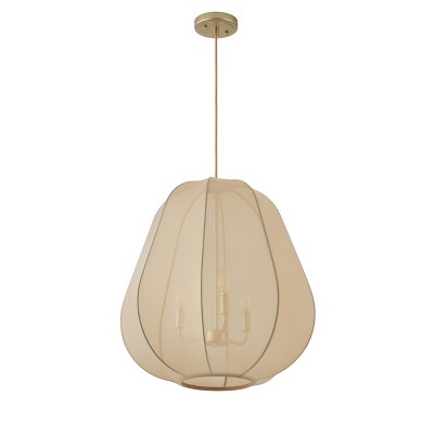 Gold Fabric Teardrop Pendant Light, Modern 3-Light Candelabra Chandelier Fixture, Elegant Lantern Design for Entryway, Bedroom, or Living Room