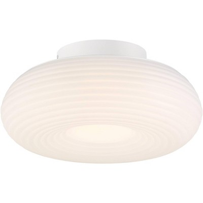 Possini Euro Design Encina 13" Modern Industrial Flush-Mount Ceiling Light Fixture Kitchen Foyer Hallway Round Black White Glass Bedroom Bathroom
