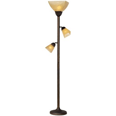 Franklin Iron Works Rustic Farmhouse Mission Torchiere Floor Lamp 71 1/2" Tall Roman Bronze 3-Light Frosted Champagne Amber Glass for Living Room