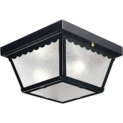 Progress Lighting, Recessed Collection, 2-Light Ceiling Mount, Matte Black, Textured Glass, Scalloped Edge