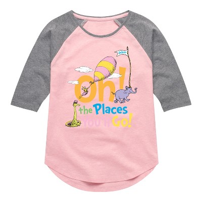 Girls' - Dr. Seuss - All Things Red, White and Blue Shirt Tail Raglan Graphic T-shirt