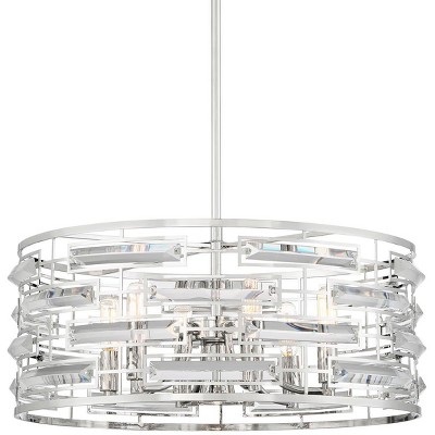 Possini Euro Design Smart Polished Nickel Chandelier 20" Wide Modern Drum Clear Crystal 6-Light Fixture for Dining Room House Foyer Kitchen Island
