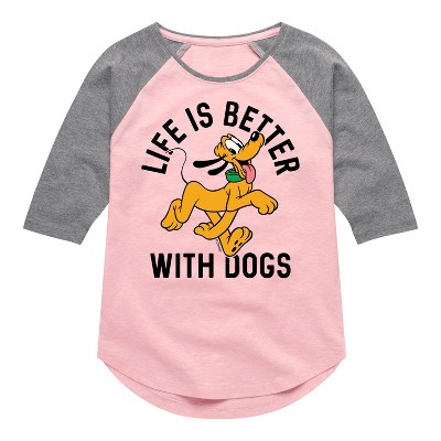 Girls' - Disney - Pluto Life Is Better With Dogs Shirt Tail Raglan Graphic T-shirt