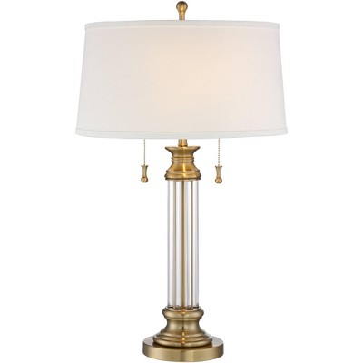 Vienna Full Spectrum Traditional Table Lamp with USB Charging Port 30" Tall Antique Brass 2-Light Drum Shade for Living Room Bedroom House