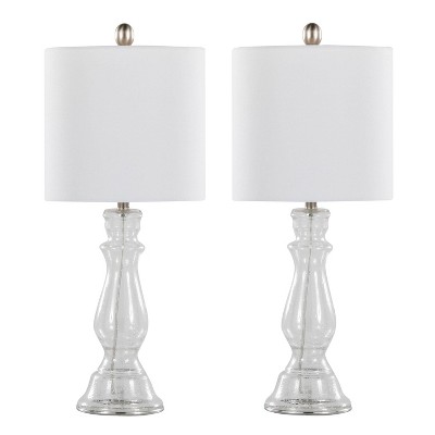 LumiSource (Set of 2) Bishop 24" Contemporary Glass Table Lamps Clear Seeded Glass Brushed Nickel and White Linen Shade from Grandview Gallery